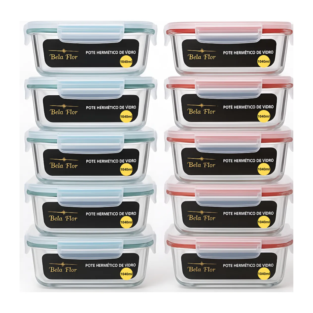 O kit com 10 potes herméticos de vidro de 640 ml é uma opção equilibrada de custo-benefício para quem busca organizar e conservar alimentos no dia a dia. Com capacidade ideal para marmitas, porções individuais e sobras, o conjunto é feito em vidro, material que não retém odores nem manchas, trazendo mais higiene e praticidade para a rotina na cozinha.